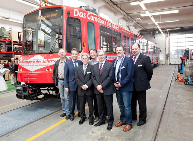 Die Stadtwerke Bonn hatten sich 2007 dazu entschlossen, statt 25 neue Stadtbahnmodelle die ältesten Fahrzeuge in eigenen Werkstätten und mit eigenem Personal zweit zu erstellen. „Wir haben uns bewusst nicht für eine konservative Lösung entschieden", sagte Stadtwerke-Geschäftsführer Heinz Jürgen Reining bei der Jungfernfahrt, „sondern haben im Team eine mutige Entscheidung getroffen, als wir uns für das Projekt „Zweiterstellung" und damit gegen Neuanschaffungen von Stadtbahnfahrzeugen ausgesprochen haben. Allen, die diese Entscheidung mitgetragen haben, aber vor allem dem Projektteam für die Realisierung, gilt unser Dank."