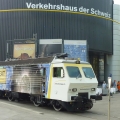 Eine Lokomotive der Südostbahn (SOB) wird künftig für das Verkehrshaus der Schweiz unterwegs sein und für die Sonderausstellung «NEAT – Tor zum Süden» werben. Die Loktaufe der Re 446 fand heute auf dem Areal des Museums statt.