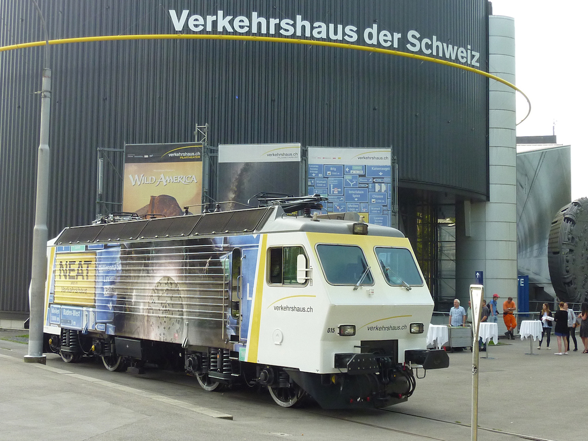 Verkehrshaus-Direktor Martin Bütikofer und Heinrich Güttinger, Leiter Verkehr der SOB, zeigten sich über die neue Bemalung der SOB-Lok hocherfreut. Das neue Kleid wirbt für die Sonderausstellung «NEAT – Tor zum Süden» im Verkehrshaus der Schweiz. Täglich wird sie nun als Zugpferd des Voralpen-Express‘ am Verkehrshaus vorbeifahren. Mit dem Fahrplanwechsel im Dezember wird zudem der Anschluss in Goldau für die Weierfahrt durch den neuen Gotthard-Basistunnel garantiert sein.