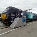 Heute präsentiert Stadler zusammen mit Direct Rail Services und Beacon Rail Leasing Limited die Lokomotive EURODUAL UK im neuen Kleid. Die Class 88 ist eine Weiterentwicklung der Class-68-Lokomotive. Bei der Class 88 handelt es sich um eine vierachsige Zweikraftlokomotive, die an das britische Lichtraumprofil angepasst ist, über ein AC/AC-Traktionssystem verfügt und sich durch eine niedrige Achslast auszeichnet. Der erste Auftrag für diese modernen Zweikraftlokomotiven kam von Direct Rail Services im Rahmen einer Partnerschaft mit Beacon Rail Leasing Limited: 10 Fahrzeuge für Einsatz im Personen- und Güterverkehr in Grossbritannien. Die Fahrzeuge kombinieren einen 25-kV-Elektroantrieb mit einem Dieselantrieb und erreichen Geschwindigkeiten von bis zu 160 km/h.