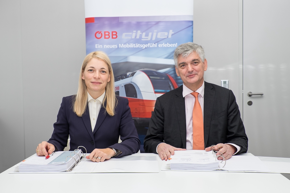 Nach Entscheidung des Verkehrsministeriums und des ÖBB Aufsichtsrats unterzeichneten heute Evelyn Palla, Vorstandsdirektorin der ÖBB-Personenverkehr AG, und Arnulf Wolfram, Leiter der Division Mobility der Siemens AG Österreich, den Vertrag über 64 weitere Cityjets. Die dreiteiligen Nah- und Regionalverkehrszüge vom Typ Desiro ML werden ab Februar 2018 bis Mitte 2019 ausgeliefert. Insgesamt werden somit 165 Cityjet-Garnituren im Einsatz sein. Ein guter Teil der Wertschöpfung bei der Modernisierung des ÖBB Fuhrparks wird in Österreich erbracht. Die Fahrwerke der Züge kommen aus dem Siemens-Werk in Graz, die Endfertigung der Züge erfolgt wie schon beim ersten Los in den ÖBB Werkstätten in Wien/Jedlersdorf.