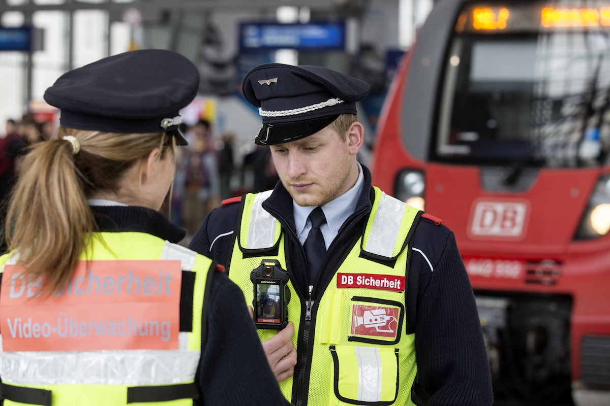 Keine Angriffe, weniger Pöbeleien und zuverlässiges Beweismaterial: Die Deutsche Bahn zieht eine positive Zwischenbilanz zum Einsatz von Körperkameras bei ihren Sicherheitskräften in Bahnhöfen. Der Pilotversuch war Anfang August auf den drei Berliner Bahnhöfen Zoologischer Garten, Alexanderplatz und Ostbahnhof gestartet. DB-Sicherheitschef Hans-Hilmar Rischke: „Unsere Sicherheitskräfte sind sich einig: mit der Bodycam wird nicht nur Beweismaterial bei Straftaten gesichert, sie schreckt auch Angreifer ab.“ Gegen die Sicherheits-Teams mit Bodycams wurden seit Beginn des Tests in den Bahnhöfen keine Angriffe und deutlich weniger Pöbeleien registriert. Rischke weiter: „Wegen des klaren Erfolgs testen wir die Kameras jetzt auch bei Sicherheitskräften in Zügen.“