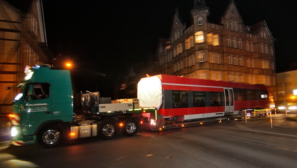 Ein ungewöhnlicher Anblick bot sich in der Nacht auf den 20. März 2012 in der Göttinger Innenstadt: ein Regionalzug kam in das Deutsche Zentrum für Luft- und Raumfahrt (DLR) gerollt - auf einem Tieflader. Der Zug soll den DLR-Verkehrsforschern dabei helfen, Bahnfahren für die Passagiere künftig komfortabler zu machen.
