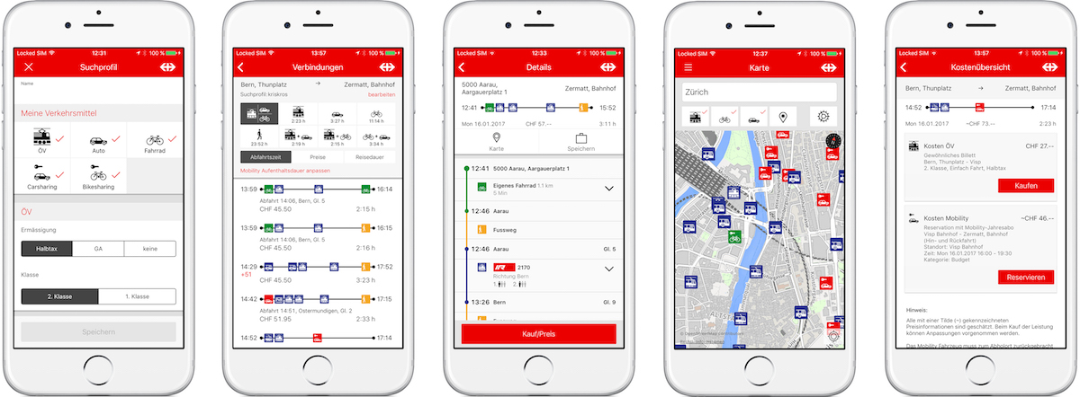 Neben klassischen ÖV-Verbindungen bezieht die App unter anderem auch den größten Carsharing-Anbieter der Schweiz (Mobility), Fahrradverleih-Stationen, den eigenen Pkw, das eigene Fahrrad sowie P+Rail und Bike-Parking-Optionen mit ein – weitere Verkehrsmittel werden folgen. Der dahinterliegende HAFAS-Algorithmus garantiert optimierte Suchergebnisse, die schnell und flexibel auf individuelle Anfragen eingehen. Ist die passende Kombination ausgewählt, erhält der Nutzer alle Tarifdetails aufgeschlüsselt und kann die Bestandteile der Reisekette buchen. Dabei werden zum einen bestehende Billette der SBB übernommen, zum anderen erfolgt eine Weiterleitung auf Apps weiterer Anbieter. Carsharing-Fahrzeuge sowie P+Rail-Parkplätze können direkt in der Reiseplaner-App reserviert werden.
