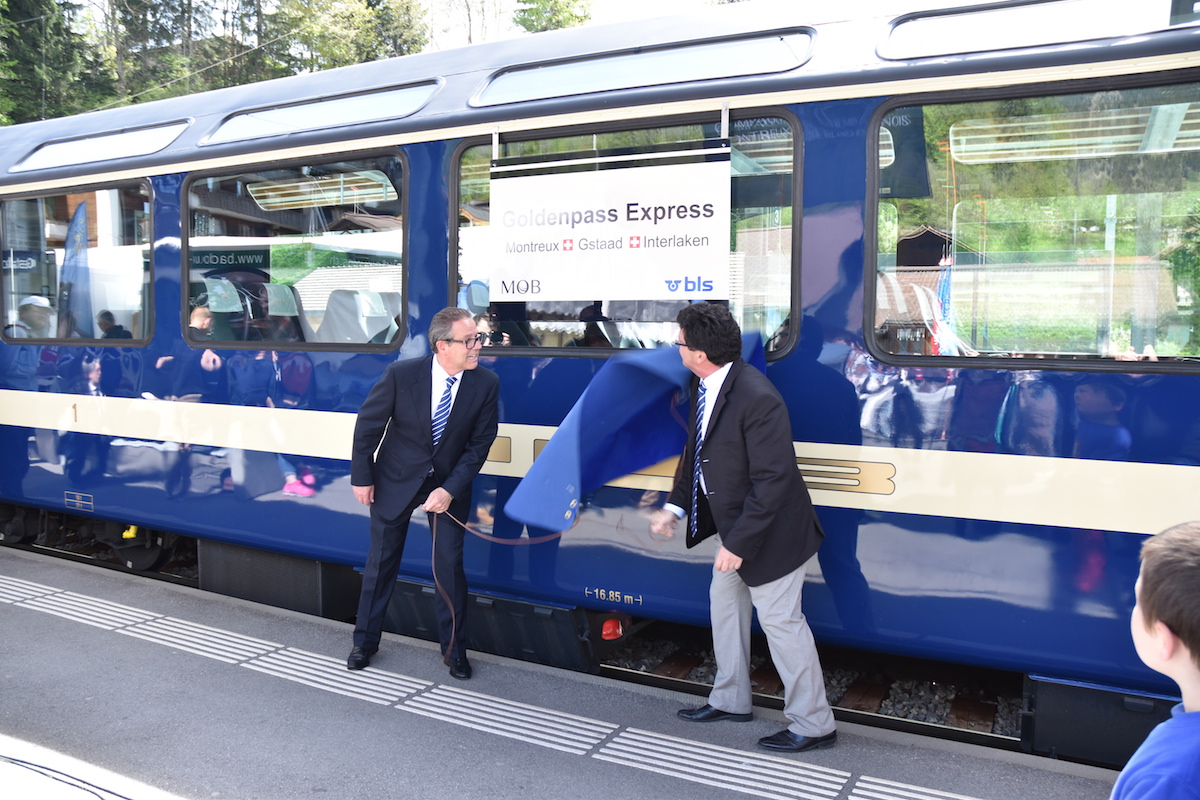 Am Freitag, 20. Mai 2016 um 15:30 Uhr brachte Georges Oberson, Generaldirektor der MOB, vor über 300 Gästen auf dem Bahnhofsplatz in Gstaad, seine Begeisterung für die Rückkehr der MOB zur ursprünglichen Farbe der ersten Panoramawagen und dem Glanz vergangener Zeiten, zum Ausdruck. Eine beeindruckende Luftakrobaten-Show und ein unglaublich dynamischer eindrucksvoller Flashmob von 40 Mitarbeitenden der MOB sorgten für beste Stimmung.