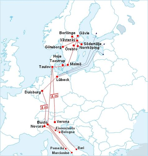 Ab 11.12.2011 kooperieren Hupac Intermodal AG und Intercontainer Scandinavia AB mit dem Ziel, ein intermodales Netzwerk im One-stop-shop zwischen Schweden und Italien zu betreiben. Die Kooperation verknüpft das bestehende schwedische Netzwerk der Intercontainer mit Verbindungen der Hupac von/nach Verona, Busto Arsizio and Dänemark via Taulov. Verknüpfungspunkt beider Netzwerke ist der Terminal Malmö CT.